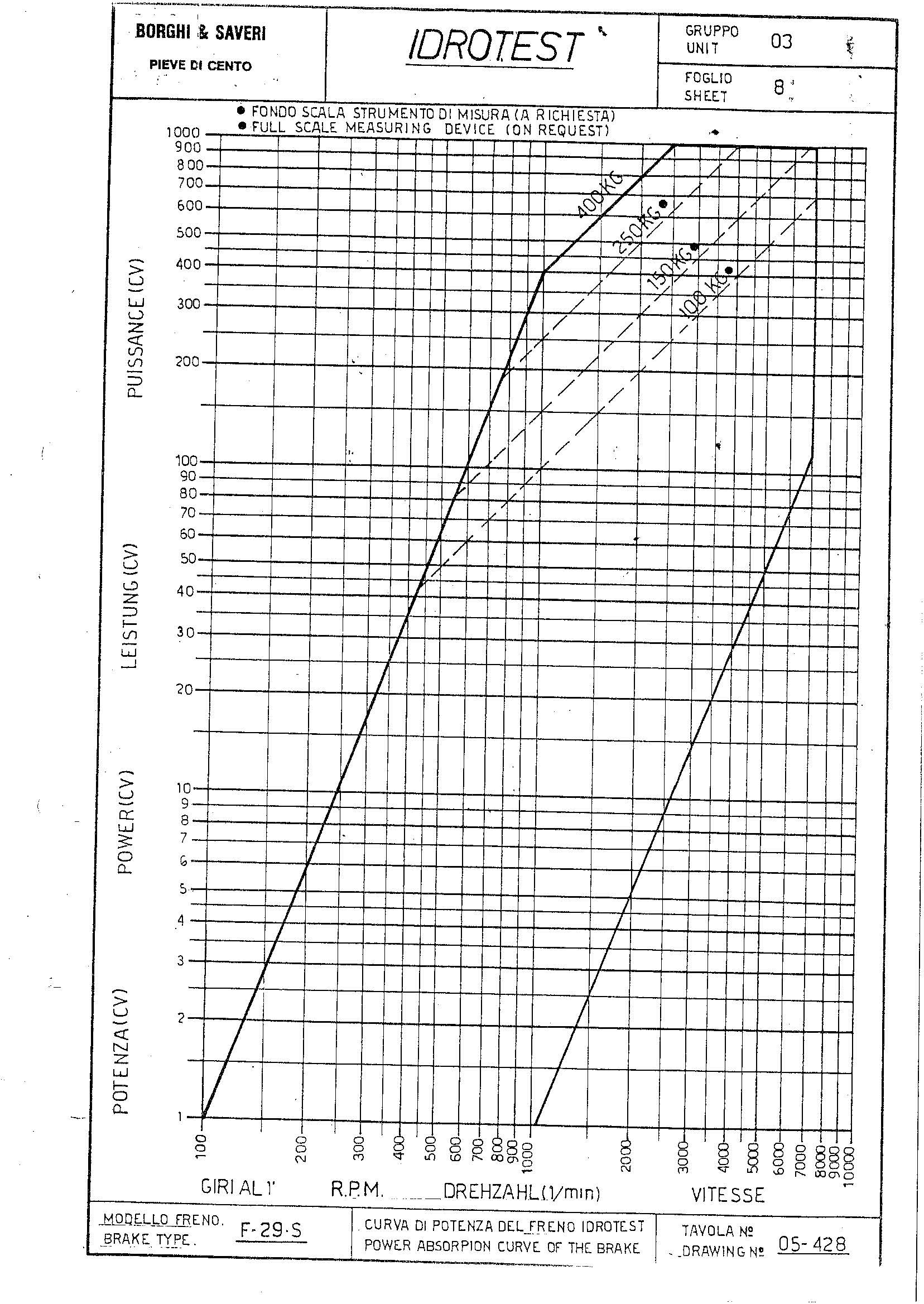 L’attrezzatura che vi proponiamo è una sala prove perfettamente funzionanete che veniva utilizzata per motori MARINI. Il banco prova IDROTEST F29 ha una potenze di frenatura dichiarata dal costruttore Borghi & Saveri di 600 CV  .